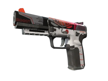 Highly accurate and armor-piercing, the pricy Five-Seven is a slow-loader that compensates with a generous 20-round magazine and forgiving recoil. It has been custom painted using high contrast colors. The robot icon beneath the rear sight matches the art on the slide. Callsign: MECHA 0272