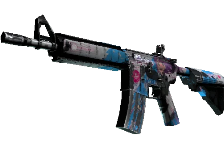 More accurate but less damaging than its AK-47 counterpart, the M4A4 is the full-auto assault rifle of choice for CTs. A custom paint job in the style of Japanese animation has been applied and depicts a female CT agent fighting against a T-side rush. “Stand your ground!”